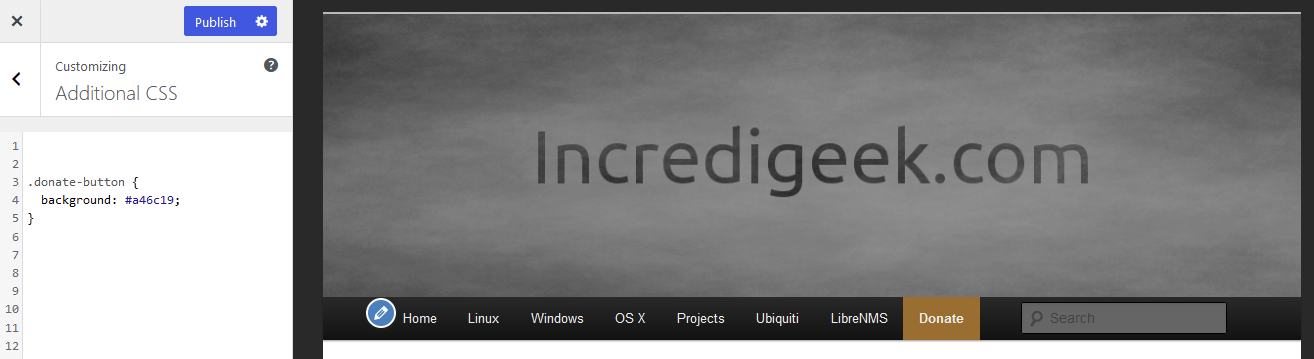 Now find where the “Additional CSS” setting is. If it is not under the main list, try looking under “Advanced”. The Additional CSS editor page should look like the following.
