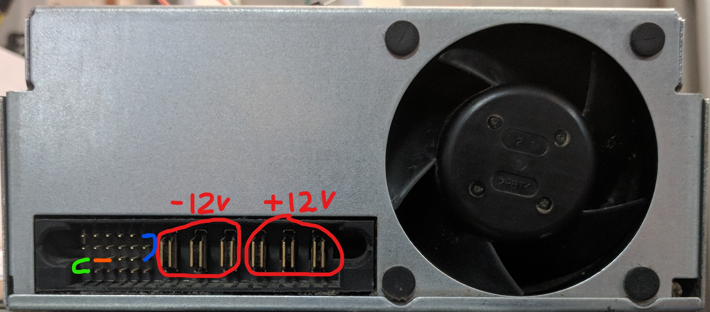 To power on the PSU, wire the pins highlighted with Blue and Green