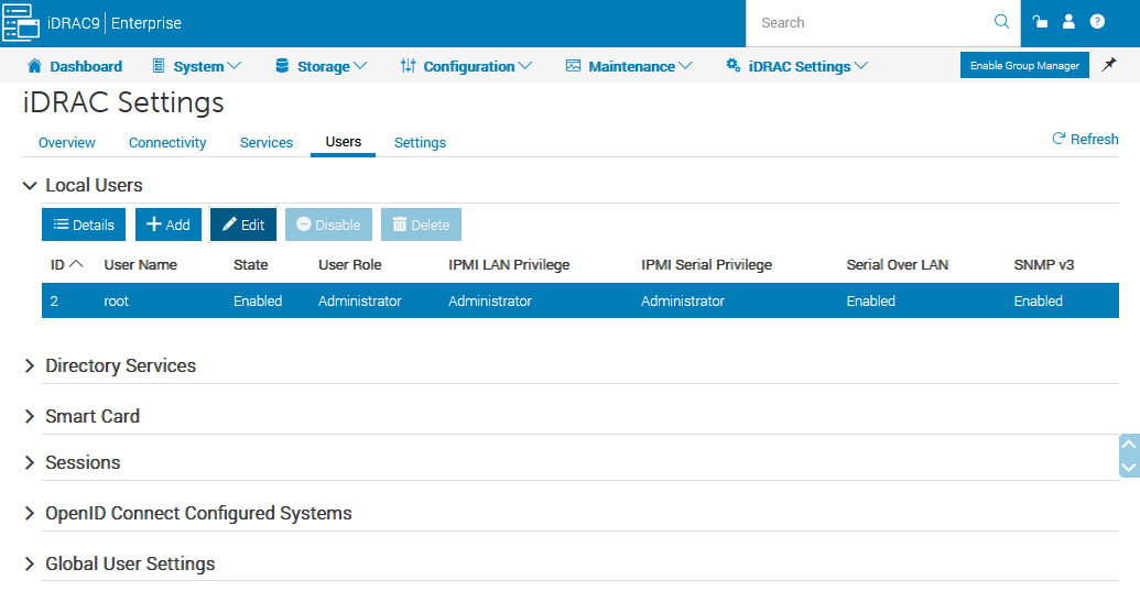 Edit the current user, or create a new user. Scroll down to SNMP V3 Settings.