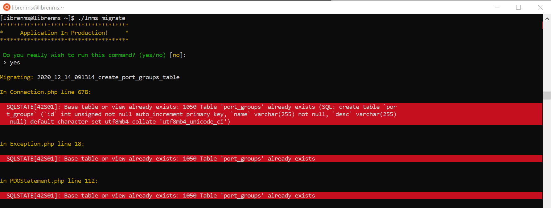 The following error showed up after adding a new device to LibreNMS.